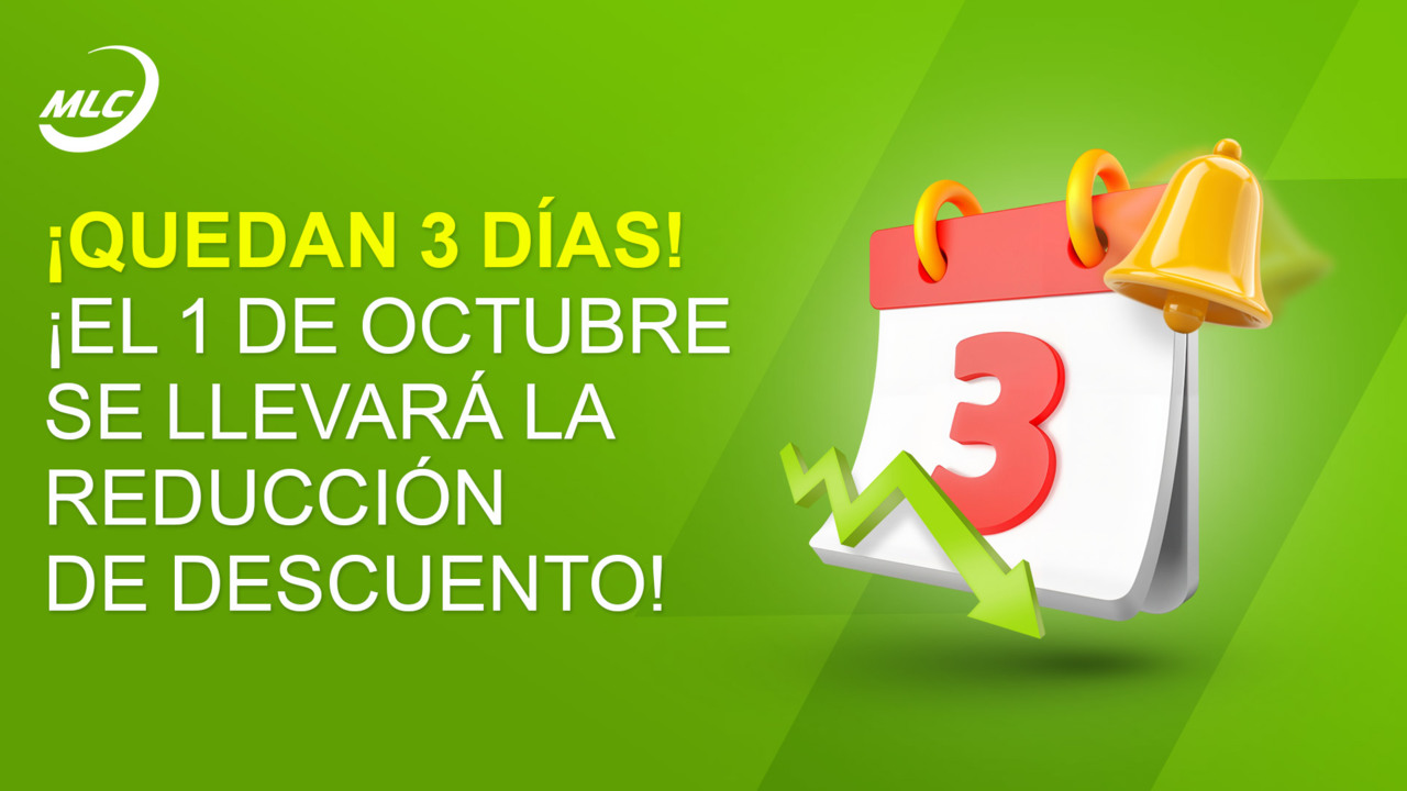¡Quedan 3 días! ¡El 1 de octubre se llevará la reducción de descuento!