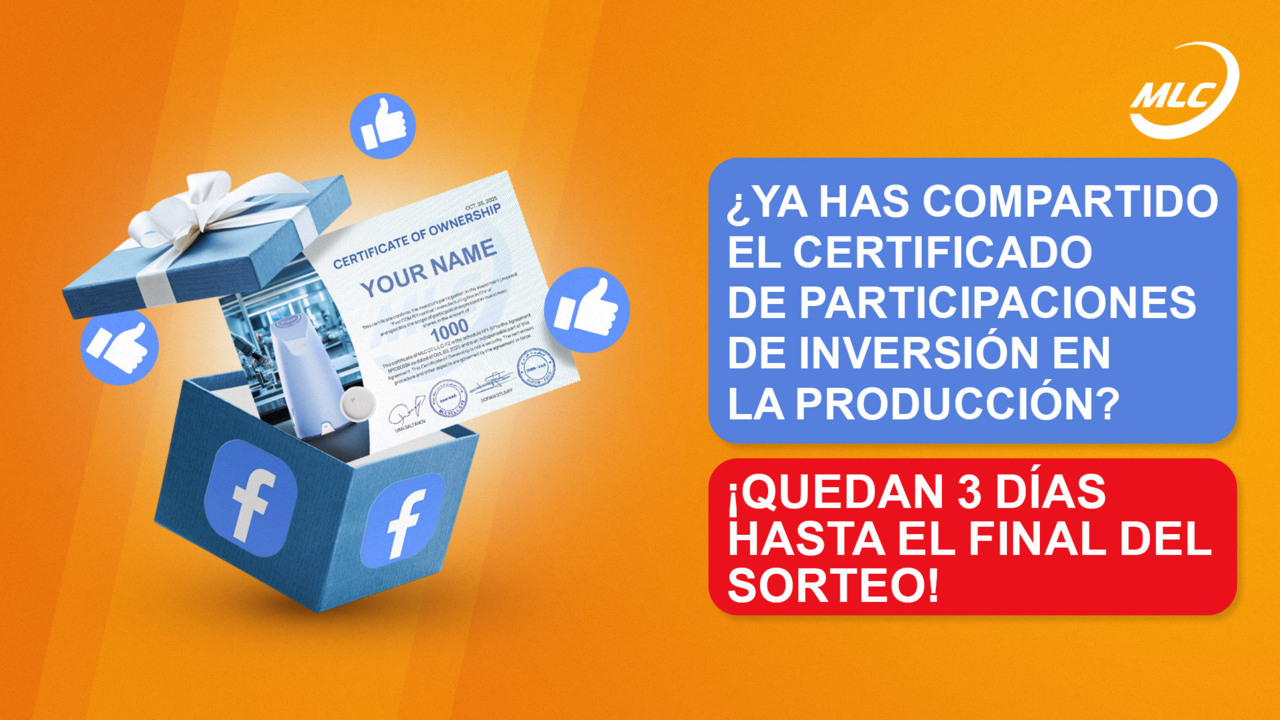 ¿Ya has compartido el certificado de participaciones de inversión en la producción? ¡Quedan 3 días hasta el final del sorteo!
