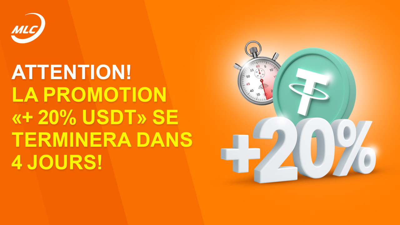 Attention ! La promotion "+ 20 % USDT" se terminera dans 4 jours !