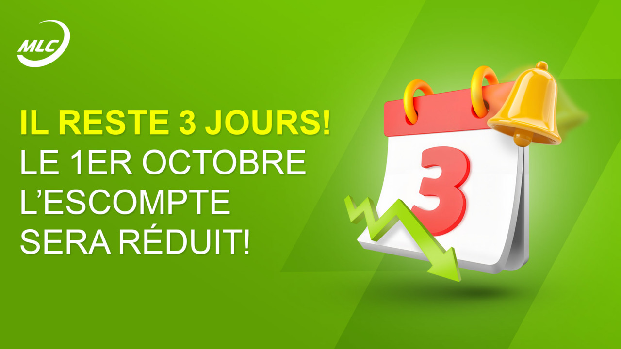 Il reste 3 jours ! Le 1er octobre l’escompte sera réduit !