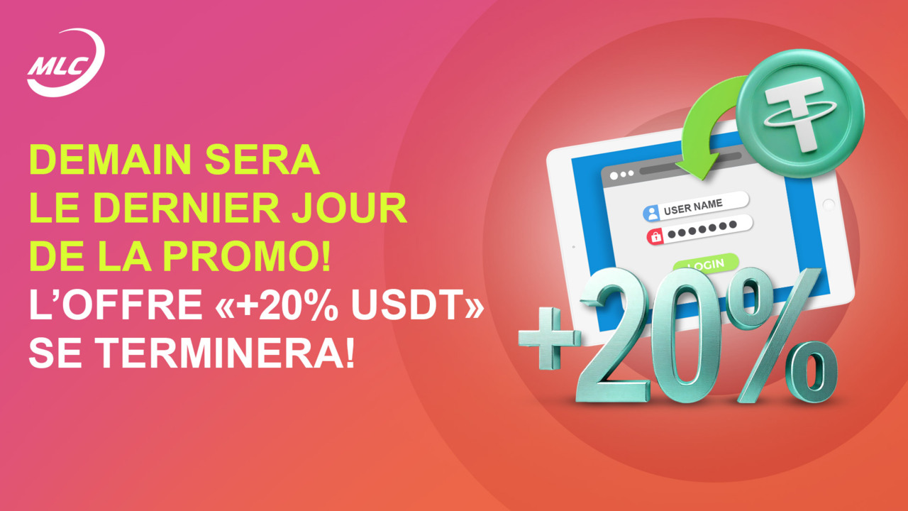 Demain sera le dernier jour de la promo ! L’offre "+ 20 % USDT" se terminera !