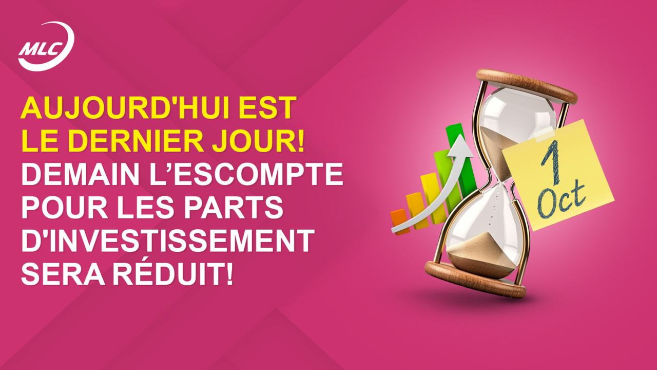 Aujourd'hui est le dernier jour ! Demain l’escompte pour les parts d'investissement sera réduit !
