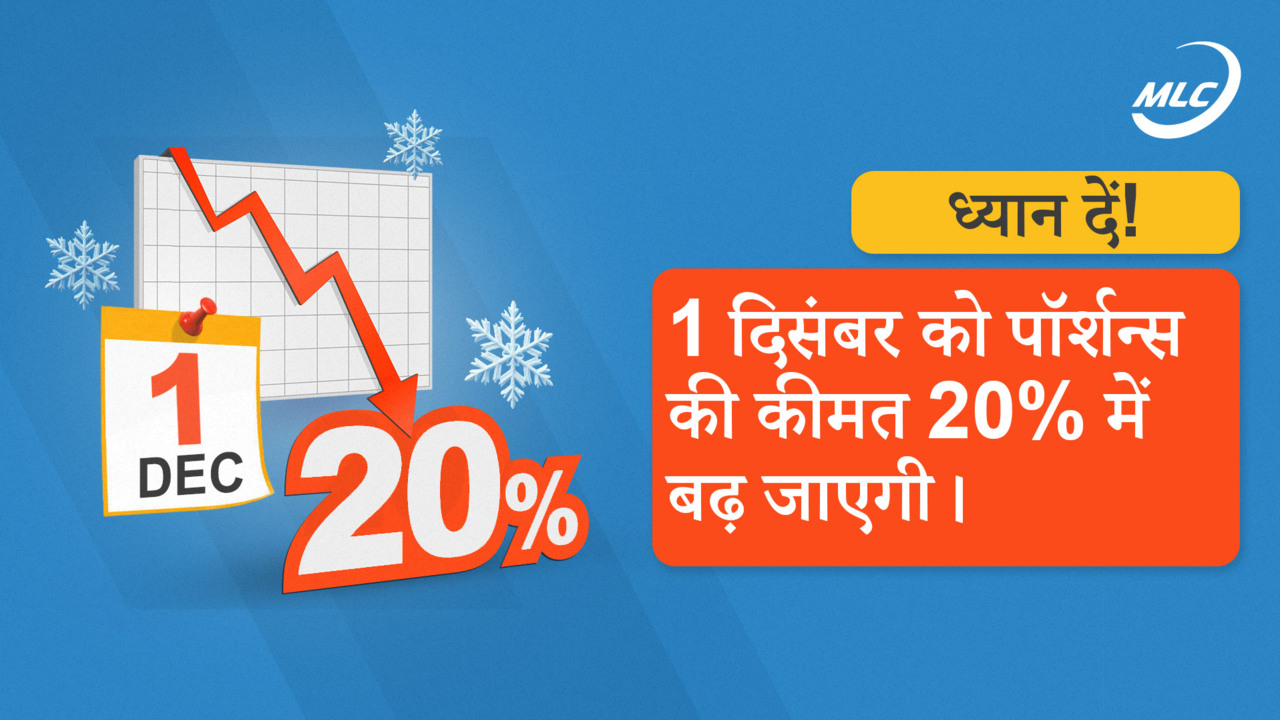 ध्यान दें! 1 दिसंबर को पॉर्शन्स की कीमत 20% में बढ़ जाएगी।